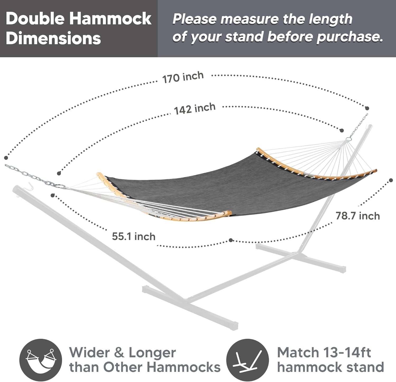 SUNCREAT Hammocks Portable Double Outdoor Hammock, 450lbs Capacity, Quick Dry 2 Person Hammock with Carrying Bag, Dark Gray