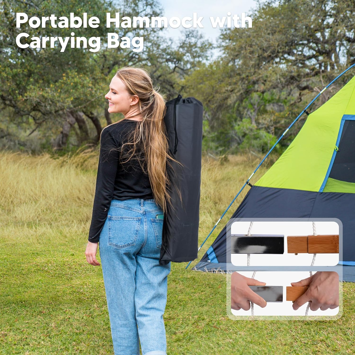 The SUNCREAT Hammock is easy to set up and comes with a convenient carrying bag for effortless portability. Simply find the perfect spot, hang it up using the included straps, and relax in no time. Whether you’re seeking a peaceful retreat in nature or a cozy spot for a nap, this hammock is your go-to companion for all your outdoor escapades.